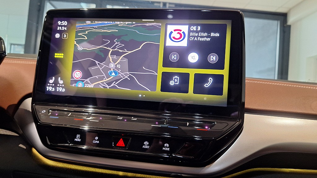 - chevron_right Einfassung des Infotainment-Displays und der zentralen Bedienungselemente in Schwarz